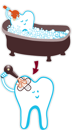 What needs doing is to cover Toothy with a fancy kind of White Paint. This works a bit like a Sticking Plaster. The White Plaster will help stop the "Plaque Bugs" from digging a hole in Toothy's Bruise.